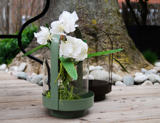 Metal & Glass Lantern (Olive Green)