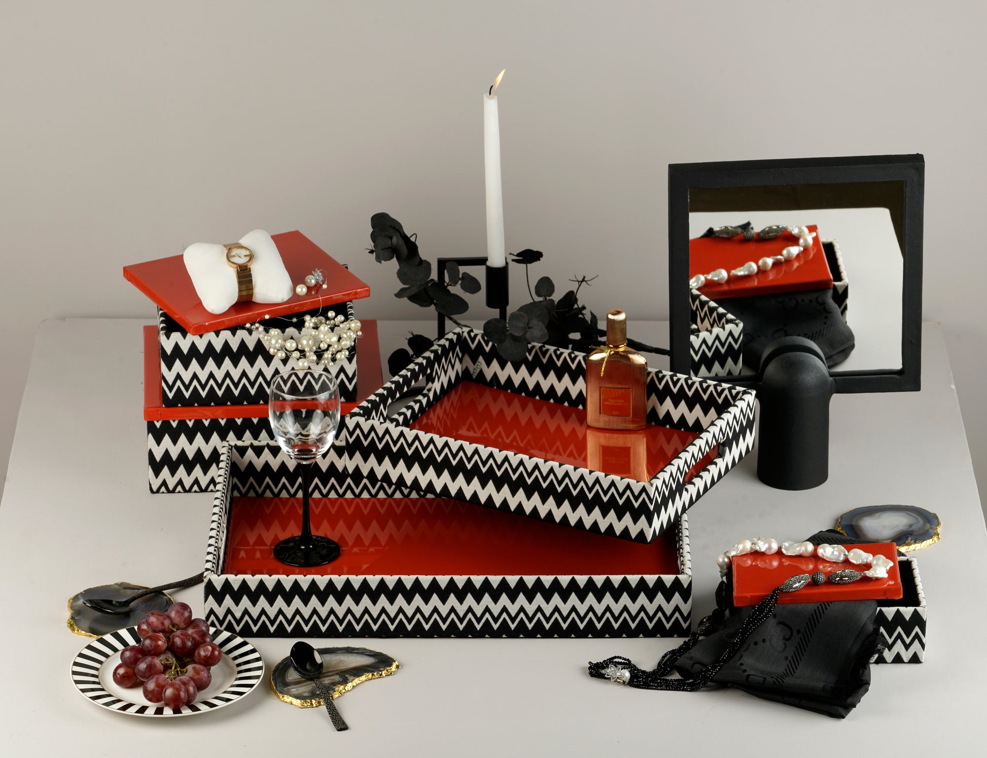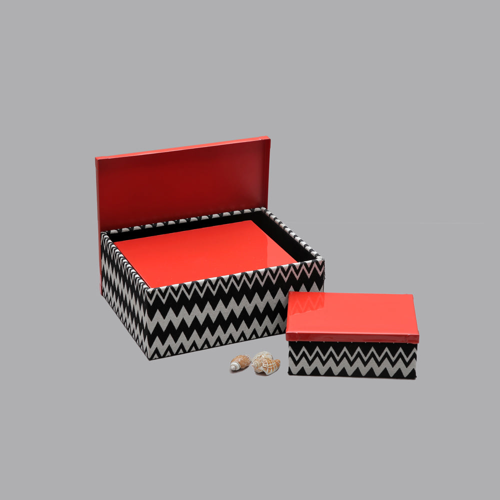 Finish: Coral Lid & Chevron Fabric Components: 6 (3 Fabric Boxes + 3 Metal Lids) Made In India