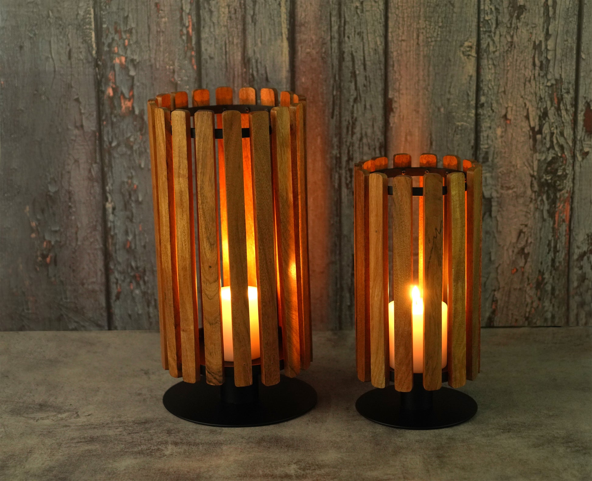 Inspired by Brazillian mid-century design, these distinctive hurricanes have an iron pillar candle holder. Pair a few to increase ambience outdoors or in - as a tablescape, on a mantel, or as floor lanterns.