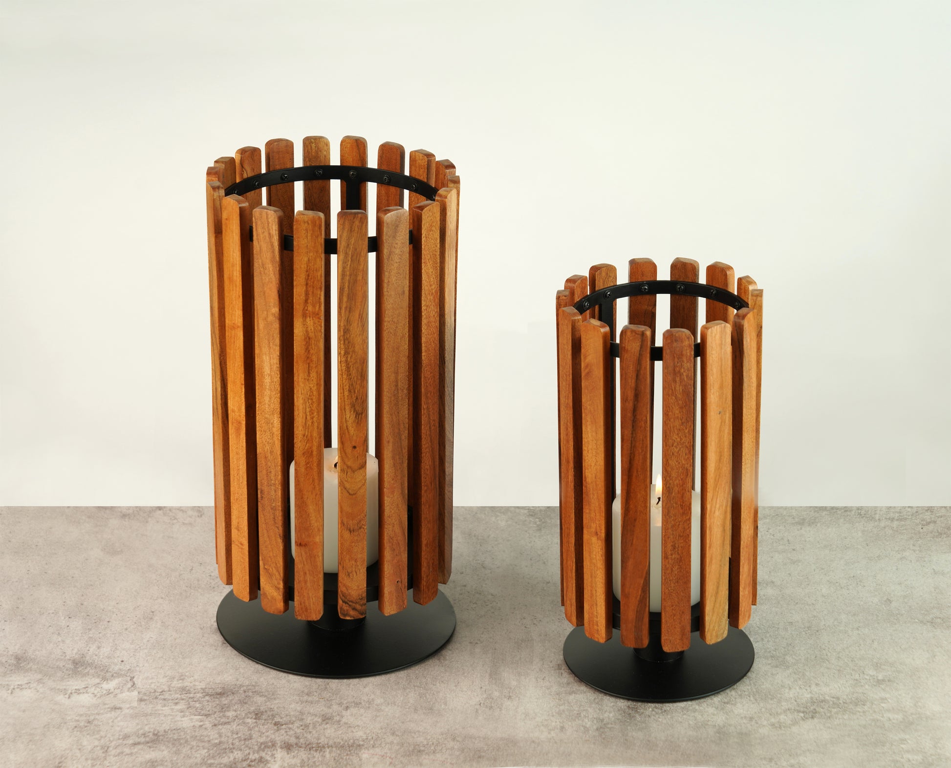 Inspired by Brazillian mid-century design, these distinctive hurricanes have an iron pillar candle holder. Pair a few to increase ambience outdoors or in - as a tablescape, on a mantel, or as floor lanterns.